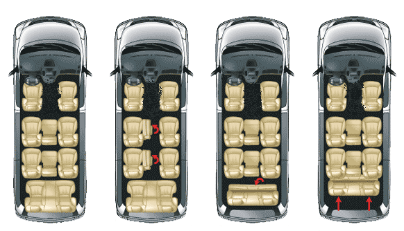 Продуманные эргономичные сиденья гарантируют удобство пассажирам в долгих поездках. Большие боковые окна обеспечивают отличный обзор путешественникам. Не смотря на то, что в салоне имеется большой ряд кресел ( все-таки для 9-11 человек)в нем существует достаточное количество свободного пространства , чтобы уложить багаж и при этом не наблюдать загромождения . Кроме того, дизайнеры постарались создать атмосферу уюта в салоне, где все детали не уступают автомобилям из класса люкс. Конструкторы создали сиденья, которые можно трансформировать, в зависимости от необходимости. Регулировать наклон, разворачивать средние сиденья в нужном направлении, складывать их, располагать по своему усмотрению-это одно из главных преимуществ салона. Приятно отметить, в автомобиле поддерживается температура на нужном уровне благодаря оснащенному климат контролю.