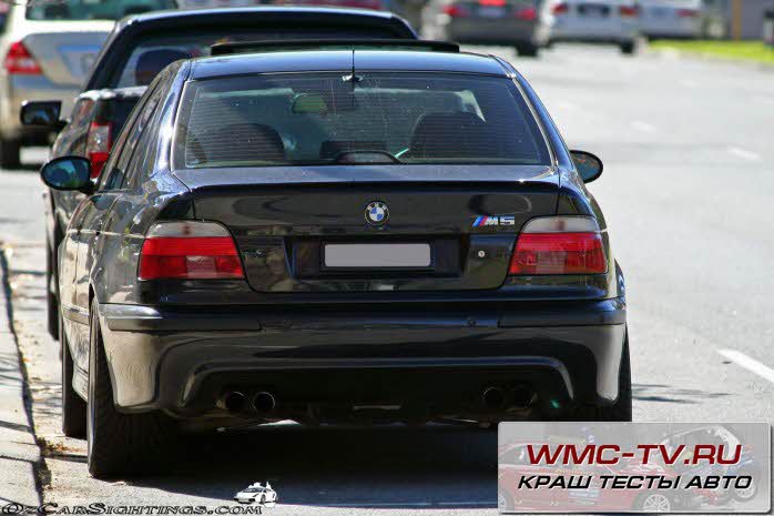 Испытание автомобиля BMW E39 проводилось по двум позициям: лобовой удар в левую часть бампера и боковой – по левой стороне. В обоих случаях краш-тест Е39 имитировал наезд другой машины. Манекены изображали водителя, пассажира переднего сиденья и двоих детей школьного возраста на заднем сиденье.