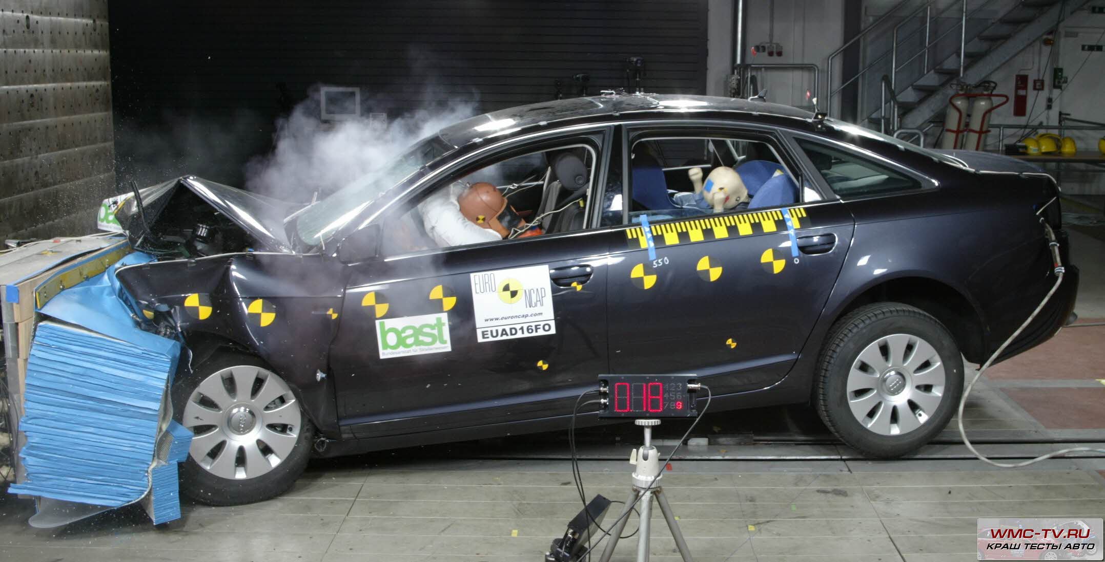 EuroNCAP проводила краш тест Audi A6 в начале 2005 года. При испытании на фронтальный удар можно выделить следующие результаты: кузов автомобиля не получил значительных деформаций (даже не возникло проблем с открыванием дверей), подушки и ремни сработали чётко, защитив водителя от чрезмерной нагрузки.