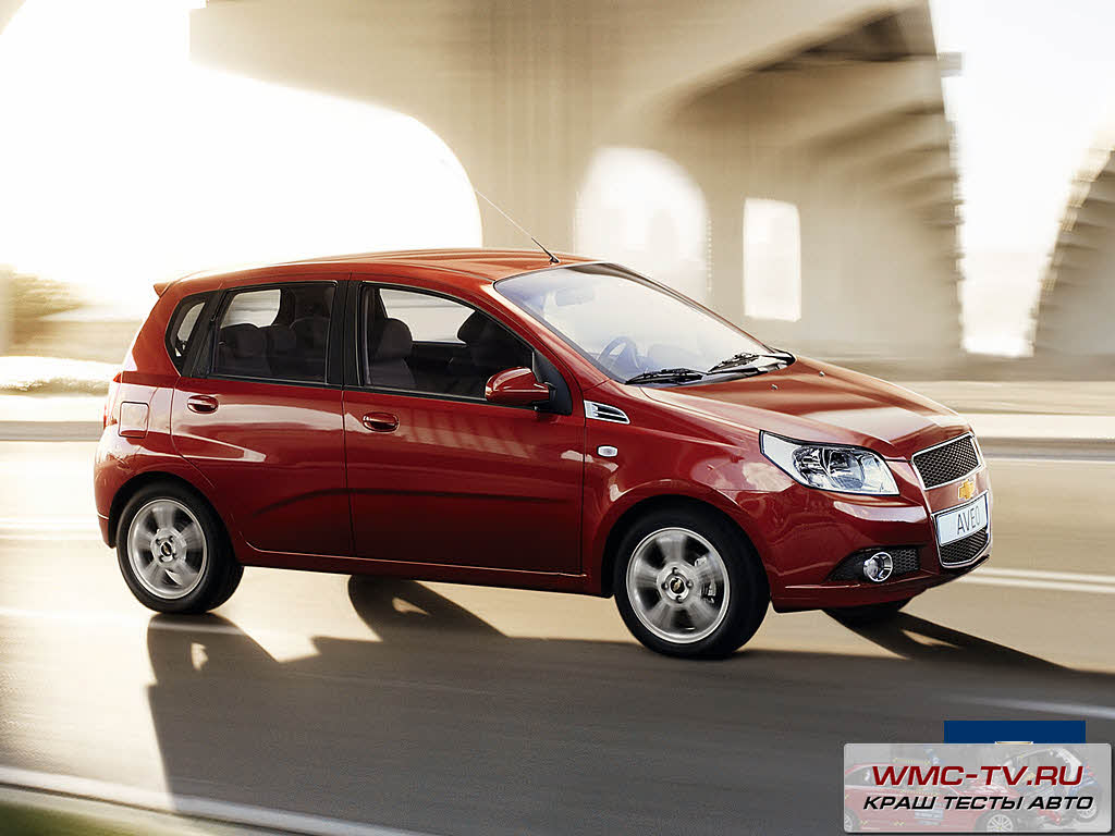 Автомобиль «Шевролет Авео» в краш-тесте на видео тестировался на безопасность водителя при боковом ударе. Платформа, имитирующая грузовой автомобиль, въехала в водительскую дверь на скорости около 60 км/час.