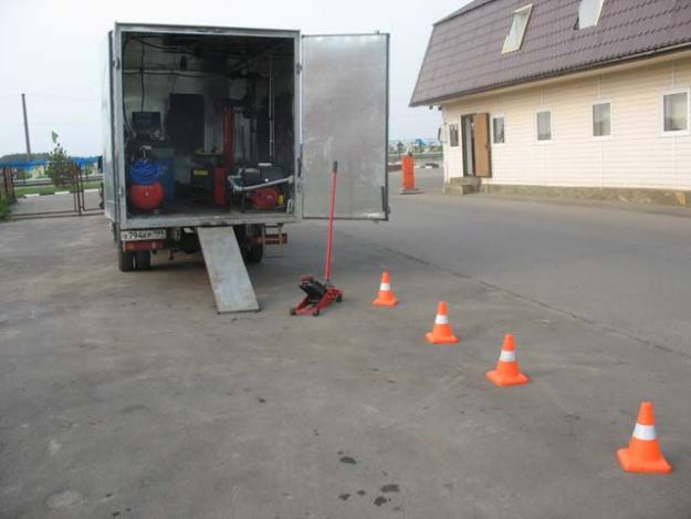 Передвижную мастерскую или выездной шиномонтаж можно организовать на базе обычного грузового автомобиля или микроавтобуса. При этом его необходимо оборудовать всем необходимым оборудованием для осуществления этого вида работ. Эта услуга пришла на наш рынок совсем недавно, но благодаря удобству и оперативности уже завоевала большое количество поклонников. Ведь шиномонтаж по вызову может предоставить все услуги по замене и ремонту автомобильных шин именно там, где это необходимо клиенту. Кроме этого, при вызове выездного шиномонтажа владелец автомобиля даже экономит. Ведь использование эвакуатора, или попытка добраться до сервиса на пробитом колесе, обойдется значительно дороже.